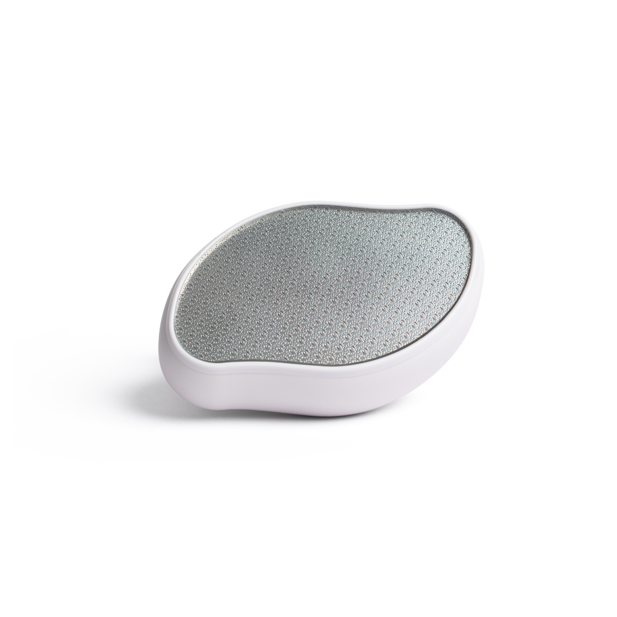 Featuring precision nano glass -technology, the ultra-fine surface gently smooths dry areas for an even, exfoliation experience. Effortless to use with one hand.